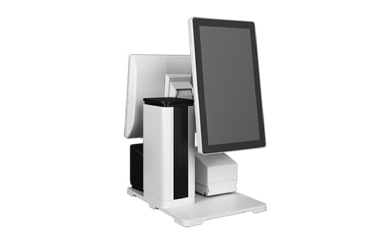 お客様側が縦型、オペレーター側がスクエアディスプレイのTWINPOS 9700Ti