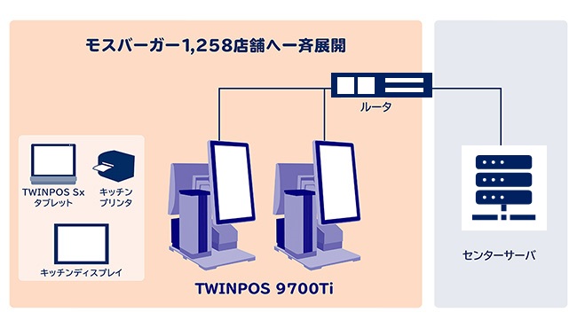 約2年の準備期間を経て、2023年1月から3か月で1,258店舗に、TWINPOS 9700Ti 2,833台、タブレット端末TWINPOS Sx 780台などの店舗システム、周辺機器類を導入しました。