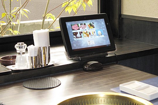 すべてのテーブルにセルフオーダー端末が設置されており、