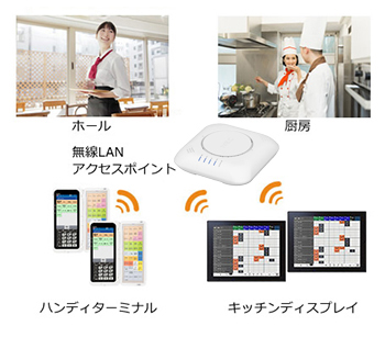 オーダーエントリーシステムの導入で構築した無線LAN環境をお客様にも開放し、店舗内で公衆無線LANスポットサービスを提供可能。