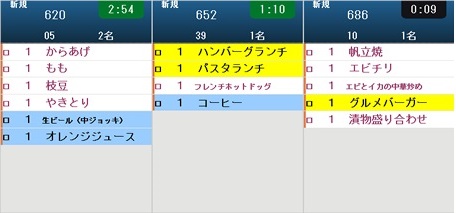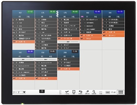 キッチンディスプレイは、ハンディターミナルやセルフオーダー端末からの注文内容(商品、数、調理方法)を画面に一覧表示します。