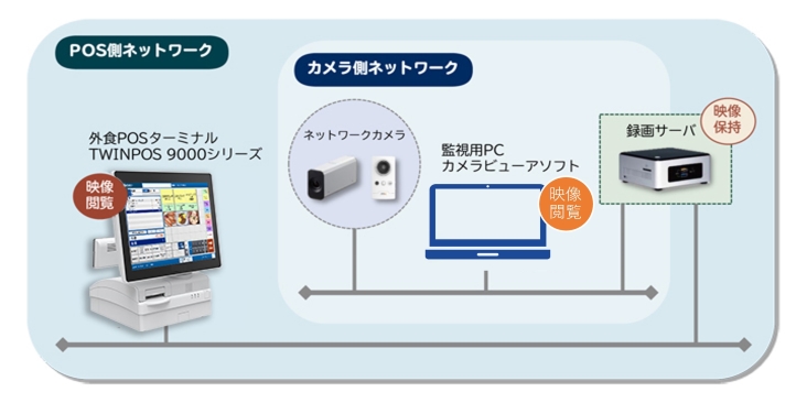 ネットワークカメラでPOSレジ操作を映像記録する「ジャーナル連携カメラシステム」。不正行為を抑制し、POSレジ周りのセキュリティ強化に効果絶大。記録した接客映像などを従業員教育へ活用すれば、人材育成にも役立ちます。