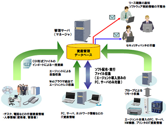「WebSAM (ウェブサム)」は、IT機器からソフトウェアライセンス、什器・備品など、さまざまな資産情報を統合管理する資産管理ソフトウェアです。「WebSAM AssetSuite Ver.3.3」では、セキュリティ製品「InfoCage セキュリティリスク管理」と連携し、「セキュリティの基盤となる資産の管理」と「セキュリティリスク(パッチ、設定)の管理」を一元化することで、統制強化を図ります。