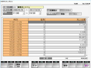 指定期間の時間帯別売上を30分単位に集計し画面表示します。