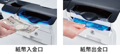 紙幣の入金口には、入金しやすいように光るガイドが採用されています。