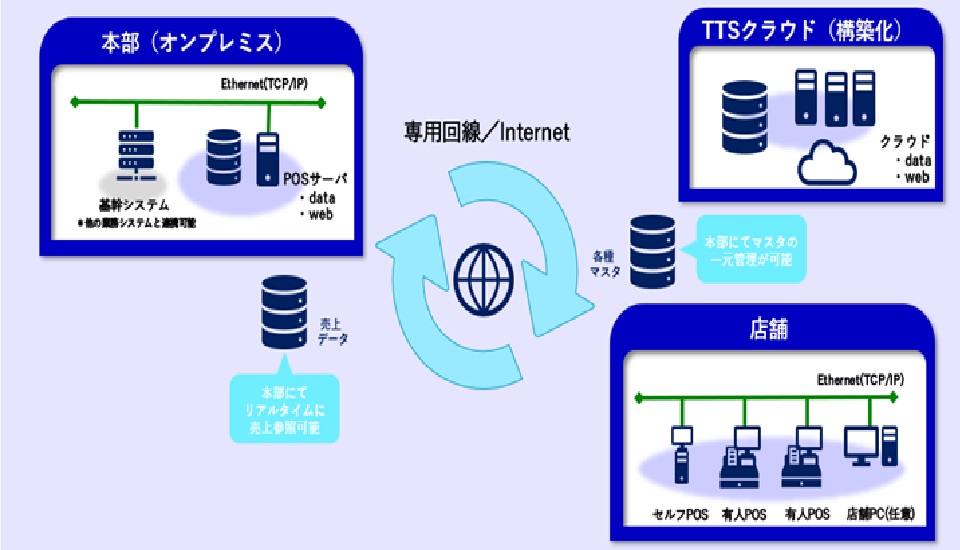 お客さまの運用形態に合わせて、上位システムへのリアルタイム連携からCSV連携まで柔軟に対応します。スタンドアロン運用の場合は、USBメモリからのマスタ取り込みや、売上データの出力も可能です。
